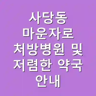 사당동 지역에서 저렴한 약국을 찾을 때는 인터넷 검색, 지역 커뮤니티 또는 주변 추천을 참고하는 것이 좋습니다. 가격 비교를 통해 최저가 약국을 선택할 수 있으며, 약국 방문 시 약사와 상담하여 복용 방법 및 주의사항에 대해 충분한 설명을 듣는 것이 중요합니다. 또한, 특정 프로모션이나 쿠폰을 활용하면 추가 할인 혜택을 받을 수 있습니다.
