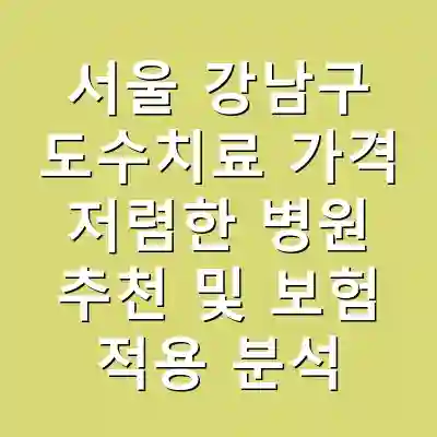서울 강남구의 도수치료는 가격이 다양하며, 보험 적용 여부에 따라 비용이 크게 달라집니다. 저렴한 병원을 선택하고 사전 준비를 하여 효과적으로 치료를 받을 수 있습니다. 전문가의 조언을 따라 안전하고 효과적인 도수치료 경험을 쌓아 보세요.