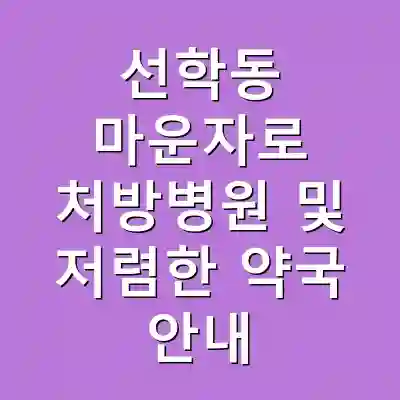 마운자로를 처방받은 후 필요한 약을 구입할 수 있는 저렴한 약국도 중요합니다. 선학동에는 행복한 약국우정 약국이 추천됩니다. 두 약국 모두 가격이 저렴하며, 다양한 의약품을 갖추고 있어 마운자로 치료 후 필요한 약물 구매가 용이합니다.